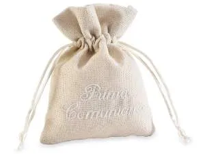 Sacchetto cotone con ricamo Prima Comunione e tirante