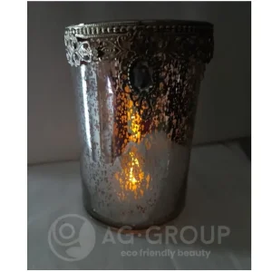 Porta candele vetro anticato con zircone