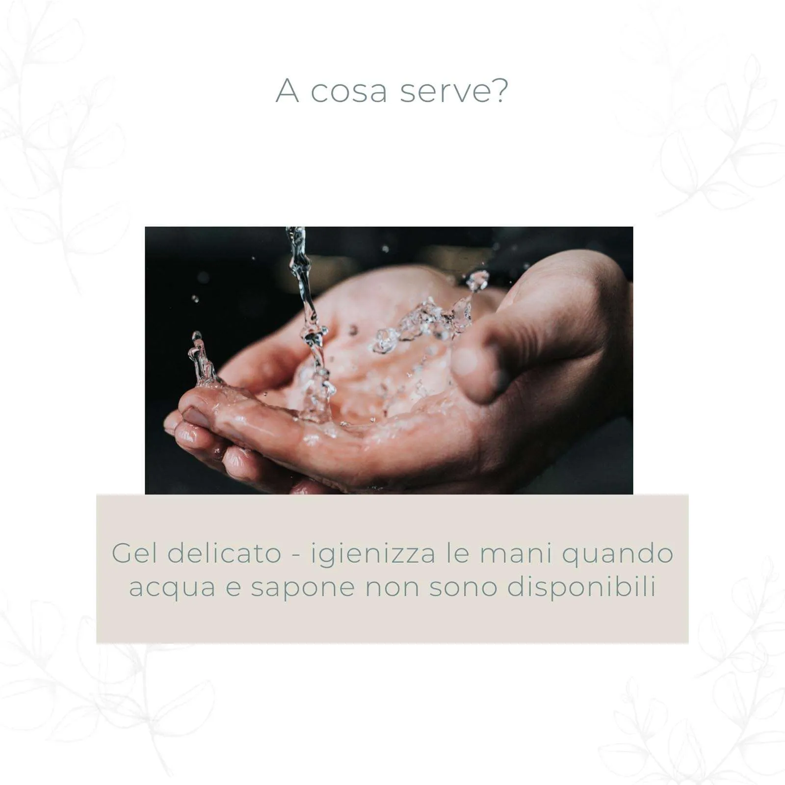 Un Gel delicato ma efficace che igienizza le mani quando acqua e sapone non sono disponibili.