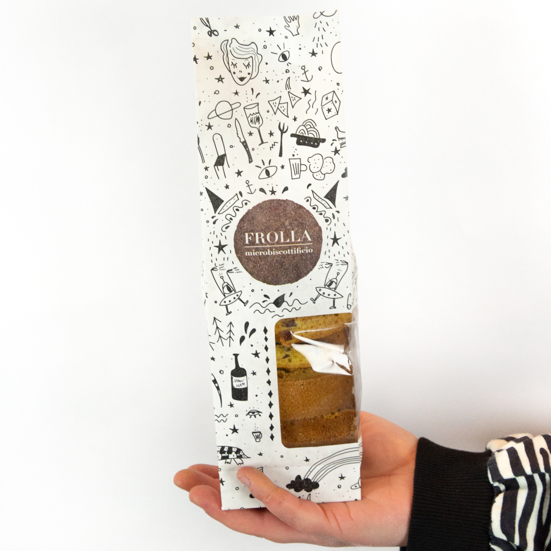 Ingredienti: Farina, Burro, Zucchero, Uova, Baking, Sale, Fiori di Camomilla e Albicocche candite.