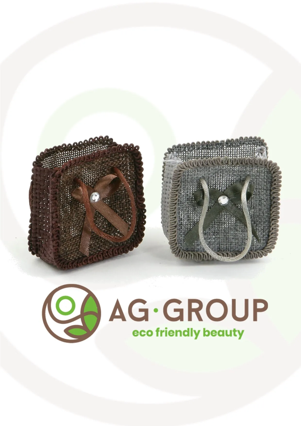 Borsetta rete in raffia marrone e grigio 12 pezzi