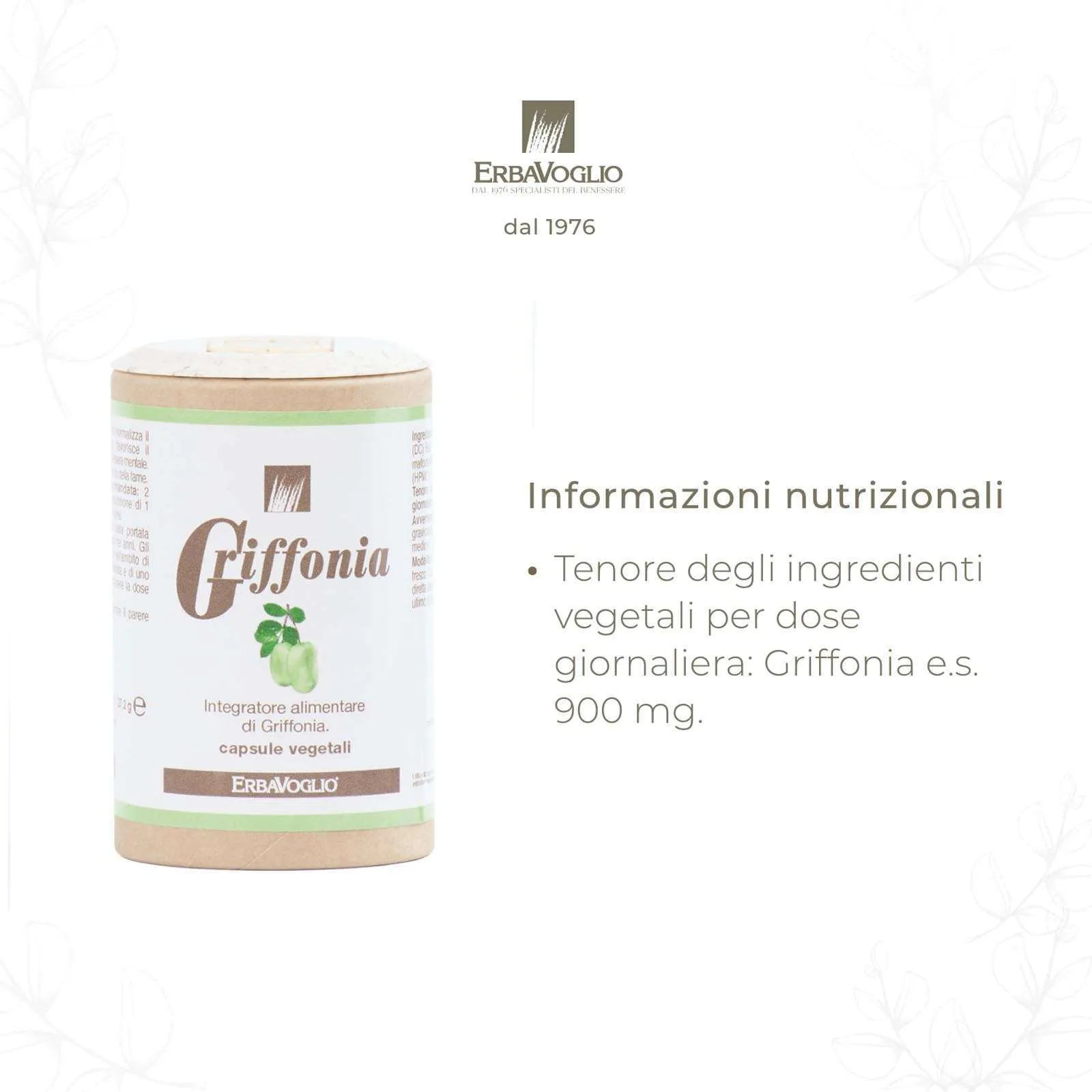 Integratore alimentare in capsule a base di Griffonia simplicifolia , una pianta completamente naturale, facilmente biodisponibile e ricca di 5-HTP .