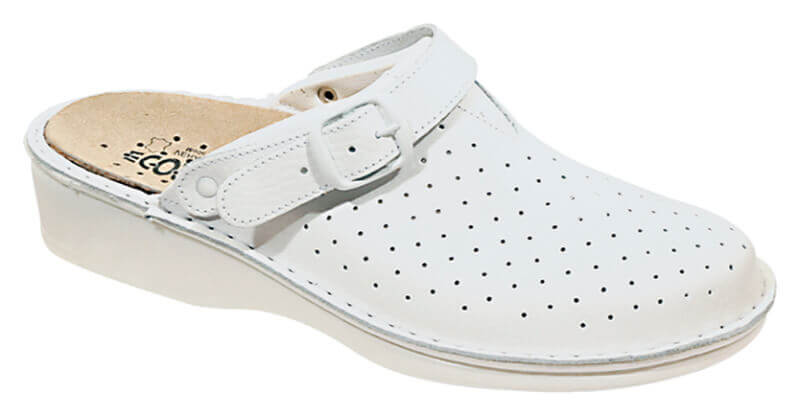 Tutte le calzature professionali Ecosanit sono prodotte con tomaia in pelle di bovino, sottopiede di vera pelle o cuoio con sagomatura anatomica e potere di assorbimento e deassorbimento del sudore. Il fondo in poliuretano è progettato per l’assorbire al meglio l’onda d’urto sul tallone, è prodotto in mescola antistatica leggera e flessibile, oltre che certificato come antiscivolo.