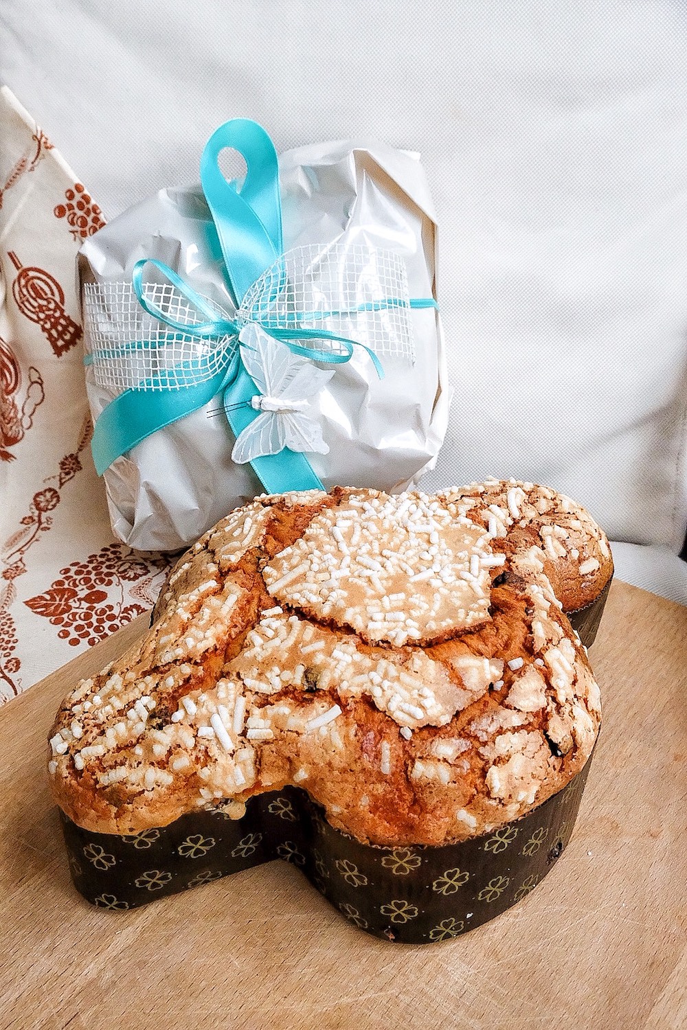 Per renderla ancora più speciale e sorprendente, non solo nel sapore, la colomba non viene inscatolata ma confezionata ogni volta in modo originale come un regalo, con carta, nastro e decorazioni in colori che a richiesta possono essere personalizzati.
