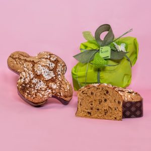 La lavorazione della colomba avviene completamente in laboratorio, con prodotti locali dell’entroterra romagnolo (come farina di mulino e burro artigianale a km zero).