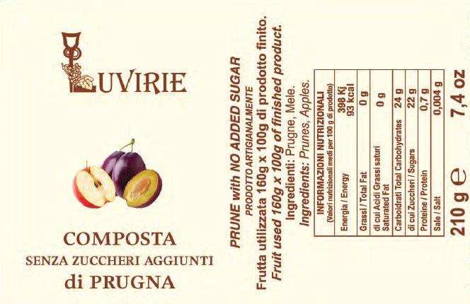 Un’alternativa sana e naturale a marmellata e confettura, perché senza zucchero, attraverso una produzione artigianale in cui l’innovativa cottura a vapore conserva sapore e colore delle prugne, quelli veri, senza coloranti o altri additivi e senza retrogusti al palato.