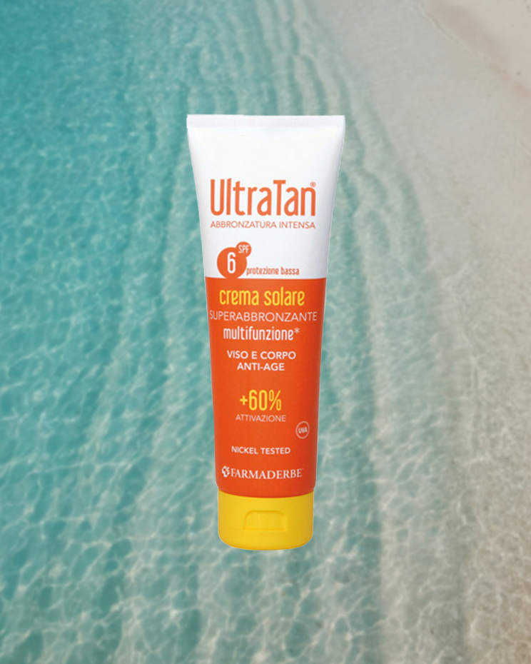 Modo d’uso: Applicare Ultratan su viso e corpo a partire da una settimana prima e durante l’esposizione al sole o alle lampade UV. Ripetere l’applicazione in caso di esposizione prolungata o lunghi bagni in mare.