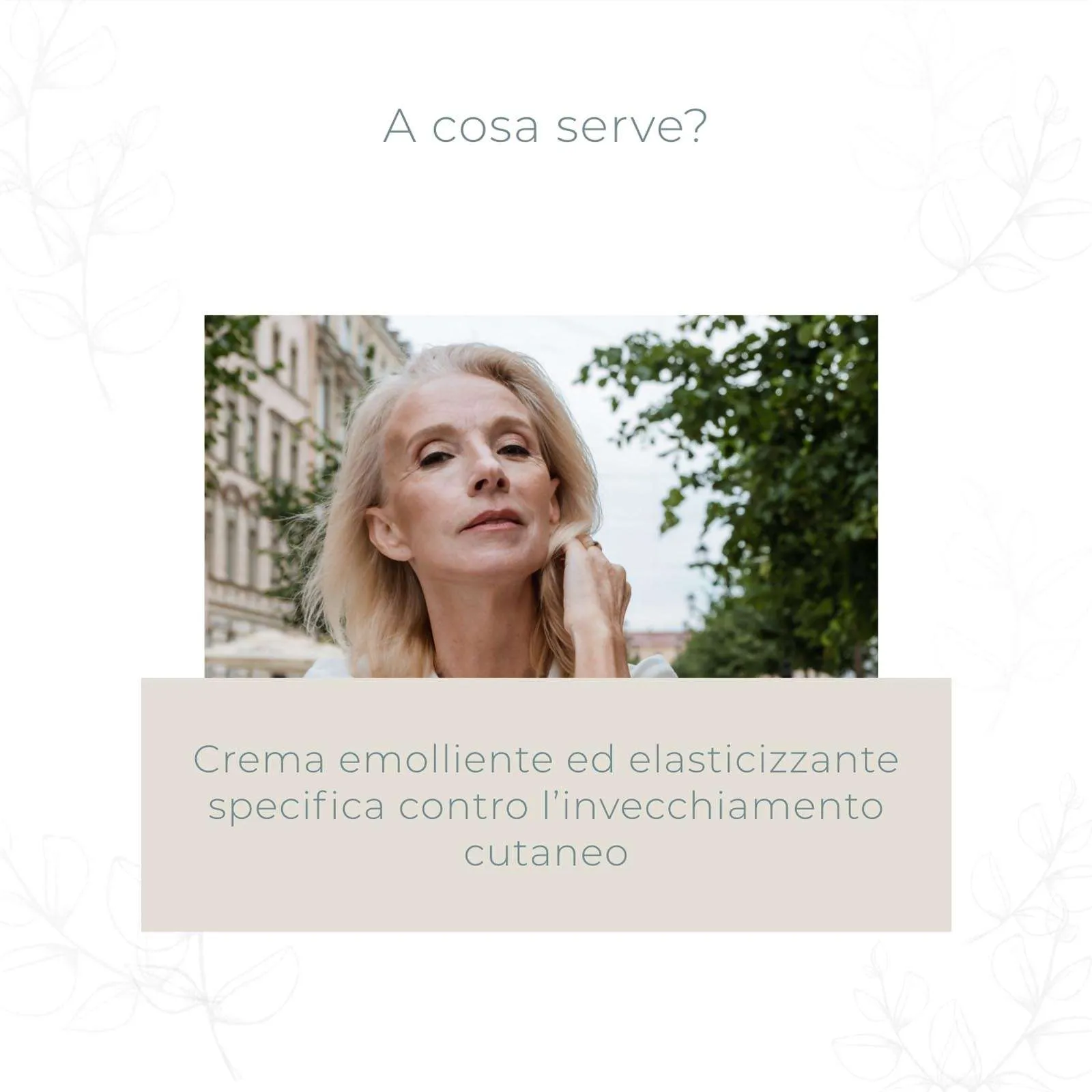 Crema emolliente ed elasticizzante specifica contro l’invecchiamento cutaneo.
