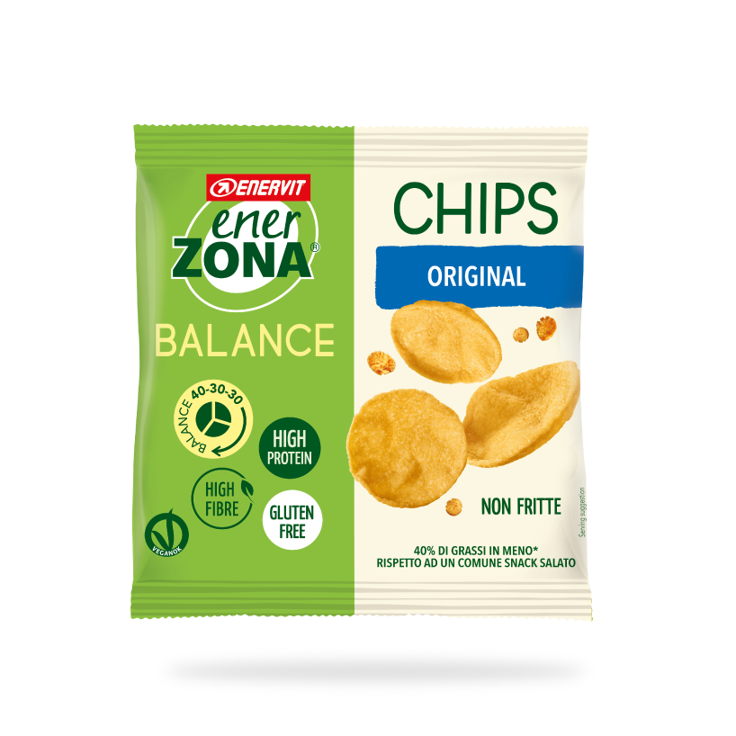EnerZona Chips sono lo snack salato bilanciato 40-30-30, ideale sia per chi segue la dieta Zona sia per chi dà valore a un’alimentazione bilanciata, grazie alla loro formulazione perfettamente bilanciata nei macronutrienti (il 40% delle calorie proviene dai carboidrati, il 30% dalle proteine e il restante 30% dai grassi).