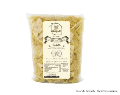 Le farfalle del pastificio Masciarelli sono un tipo di pasta di semola di grano duro 100% Italiano. Sono prodotte con una lavorazione artigianale con trafila circolare in bronzo. Infine, sono stese a mano.