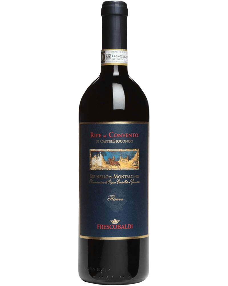Vino rosso Brunello di Montalcino Riserva prodotto da Frescobaldi nella tenuta vinicola del Convento di Castelgiocondo da uve Sangiovese attentamente selezionate. All’arrivo in cantina l’uva è sottoposta ad ulteriore scrupoloso controllo, con cernita manuale di ogni chicco. La fermentazione avviene in serbatoi di acciaio inox a temperatura controllata con rimontaggi frequenti soprattutto durante le prime fasi, per ottenere una buona estrazione delle componenti coloranti e di struttura. Il successivo periodo di maturazione in legno ha permesso di ottenere un’ottima stabilità ed un incremento della complessità aromatica e strutturale. Ripe al Convento è pronto all’immissione sul mercato 6 anni dopo la vendemmia e solo dopo un ulteriore affinamento in bottiglia.