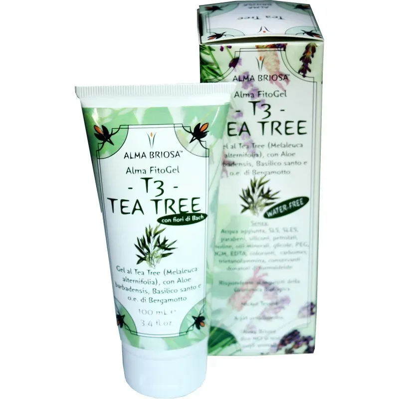 T3 è un innovativo gel water free, soffice e leggero a base di olio di Tea Tree e gel di Aloe vera.
