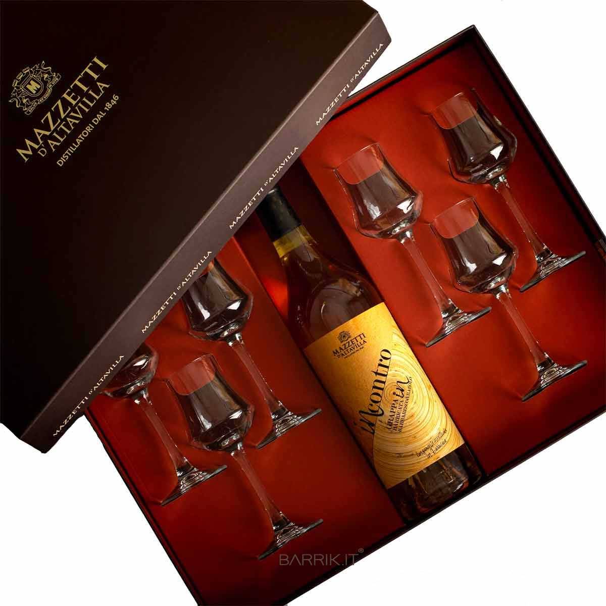 Grappa Nebbiolo Riserva Incontro con 6 Calici in Scatola