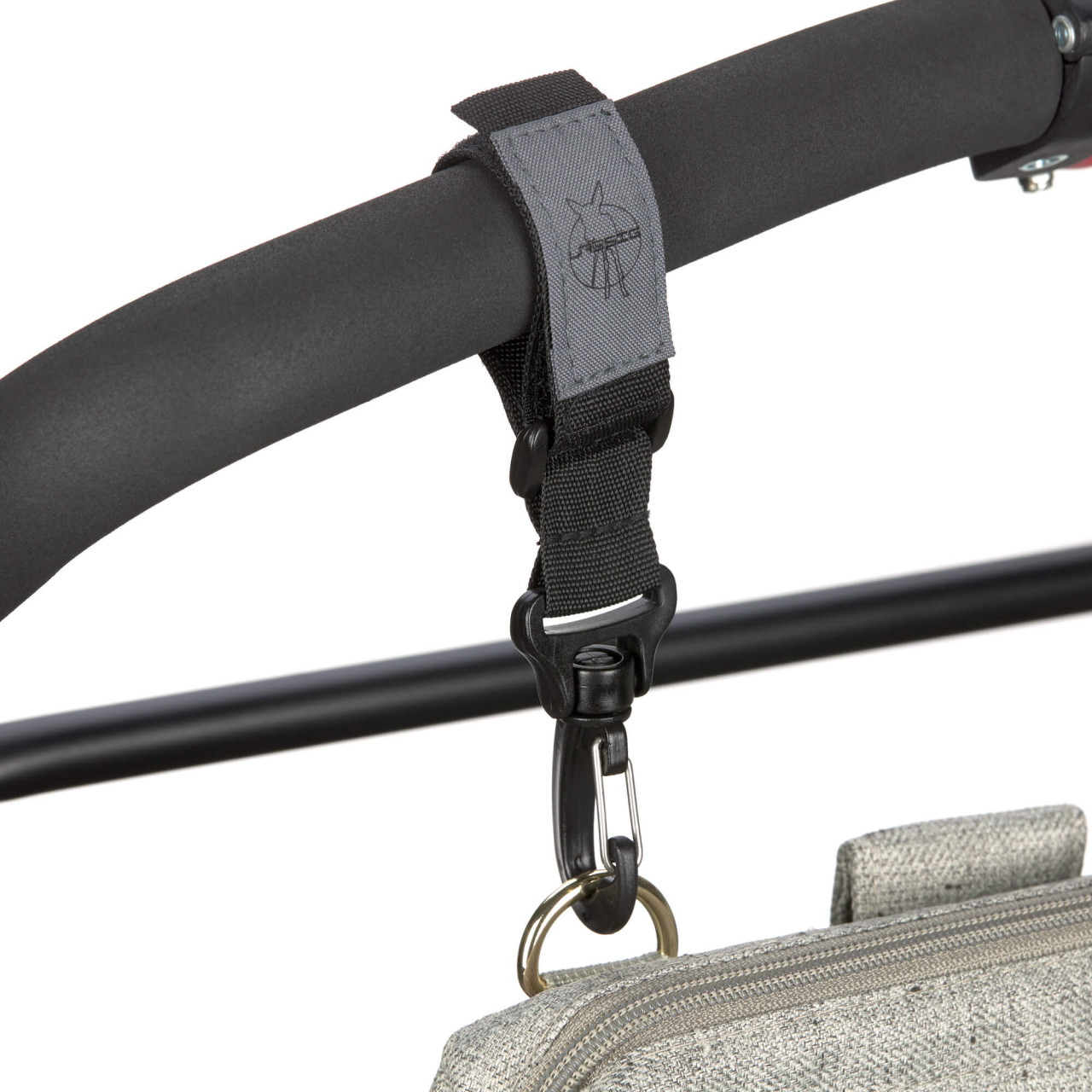 Lässig Ganci Universali per Passeggino sono composti da pratiche cinghie con fascia in velcro e moschettoni, indicati per appendere la borsa fasciatoio su quasi tutti i modelli di passeggino.