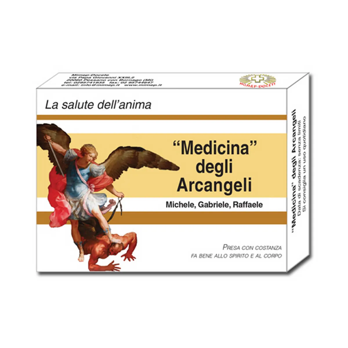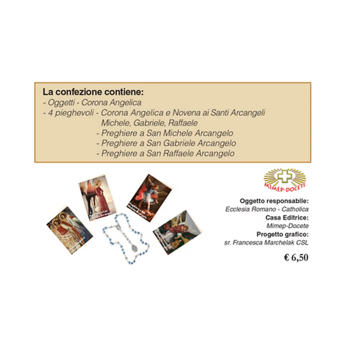 La scatola presenta la devozione ai tre Santi Arcangeli e contiene i seguenti stampati: