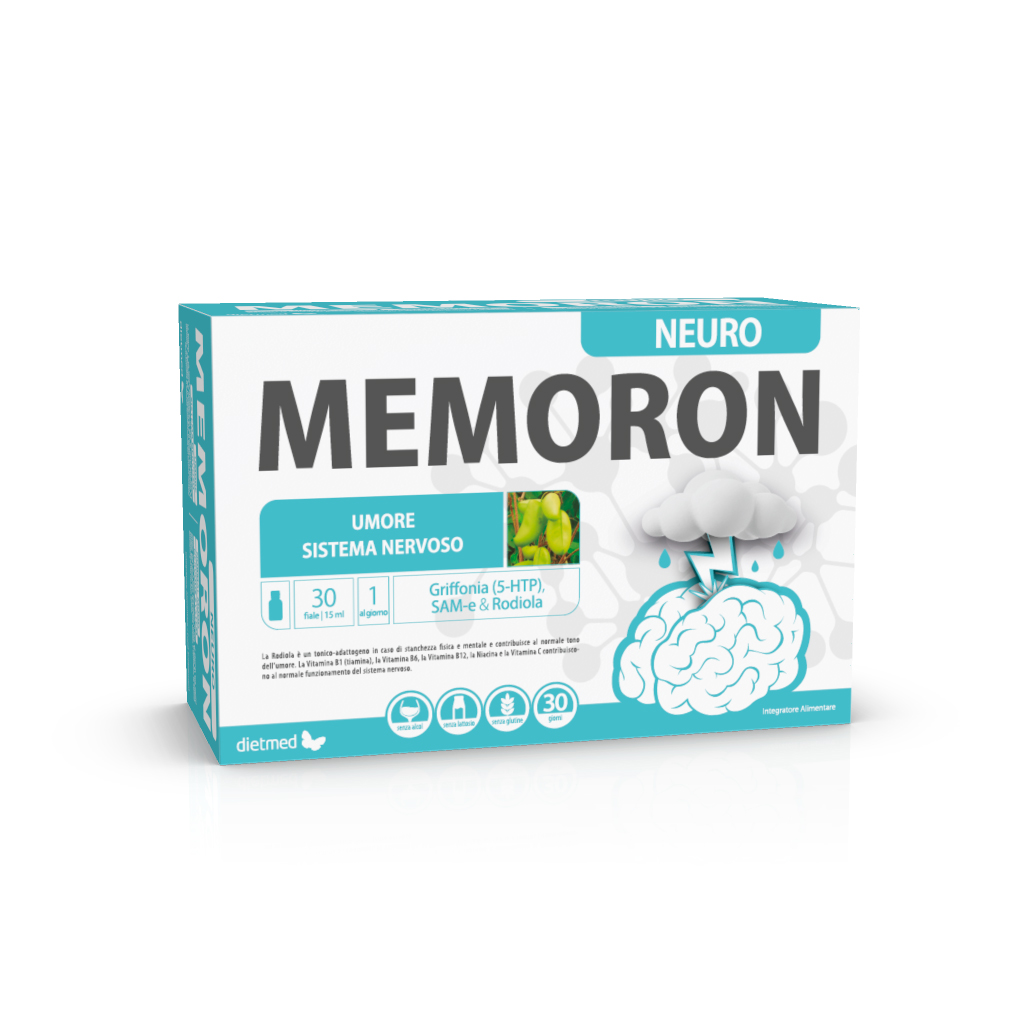 Dietmed Memoron Neuro 30 Fiale è un Integratore in Fiale a base di estratti vegetali selezionati potenziato con vitamine e SAM-e, specificamente formulato per ridurre l’Ansia e per migliorare l’Umore, riducendo i livelli di Stress in modo naturale.