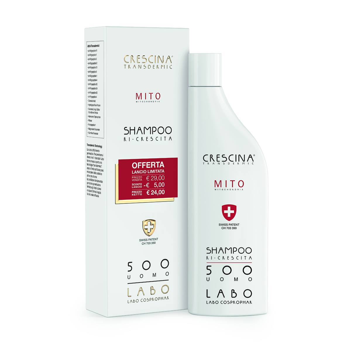 Lo Shampoo Crescina Ri-Crescita MITO è il detergente specifico coadiuvante per capelli radi a base dei principi attivi di Crescina Ri-Crescita HFSC, dei complessi PLC12, Hair