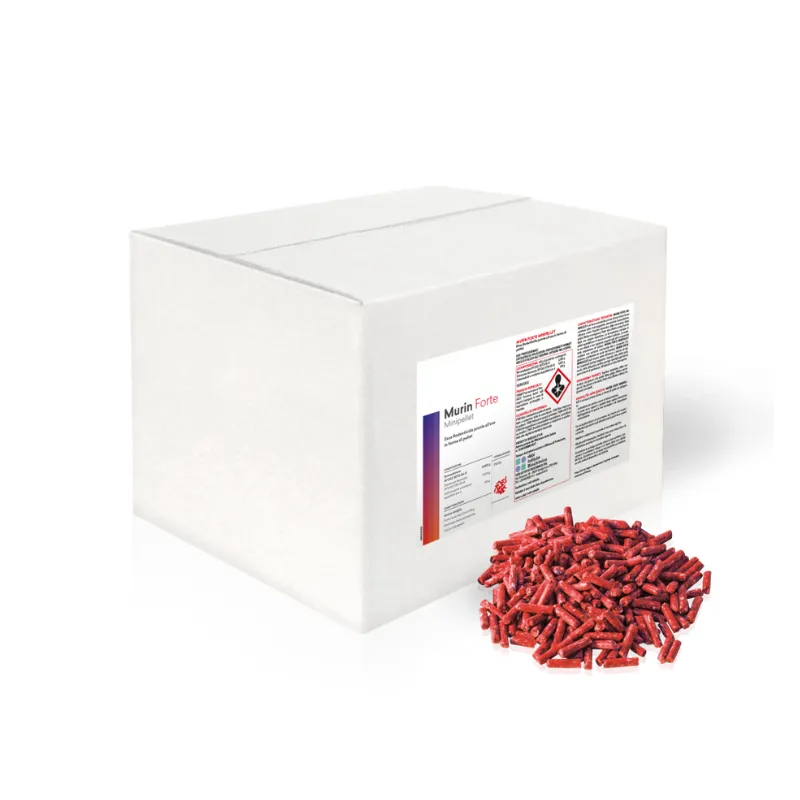 Murin Forte Minipellet è un’esca rodenticida a base di una sostanza attiva anticoaugulante, il Bromadiolone • Contiene una sostanza amaricante atta a prevenire l’ingestione accidentale da parte dei bambini •