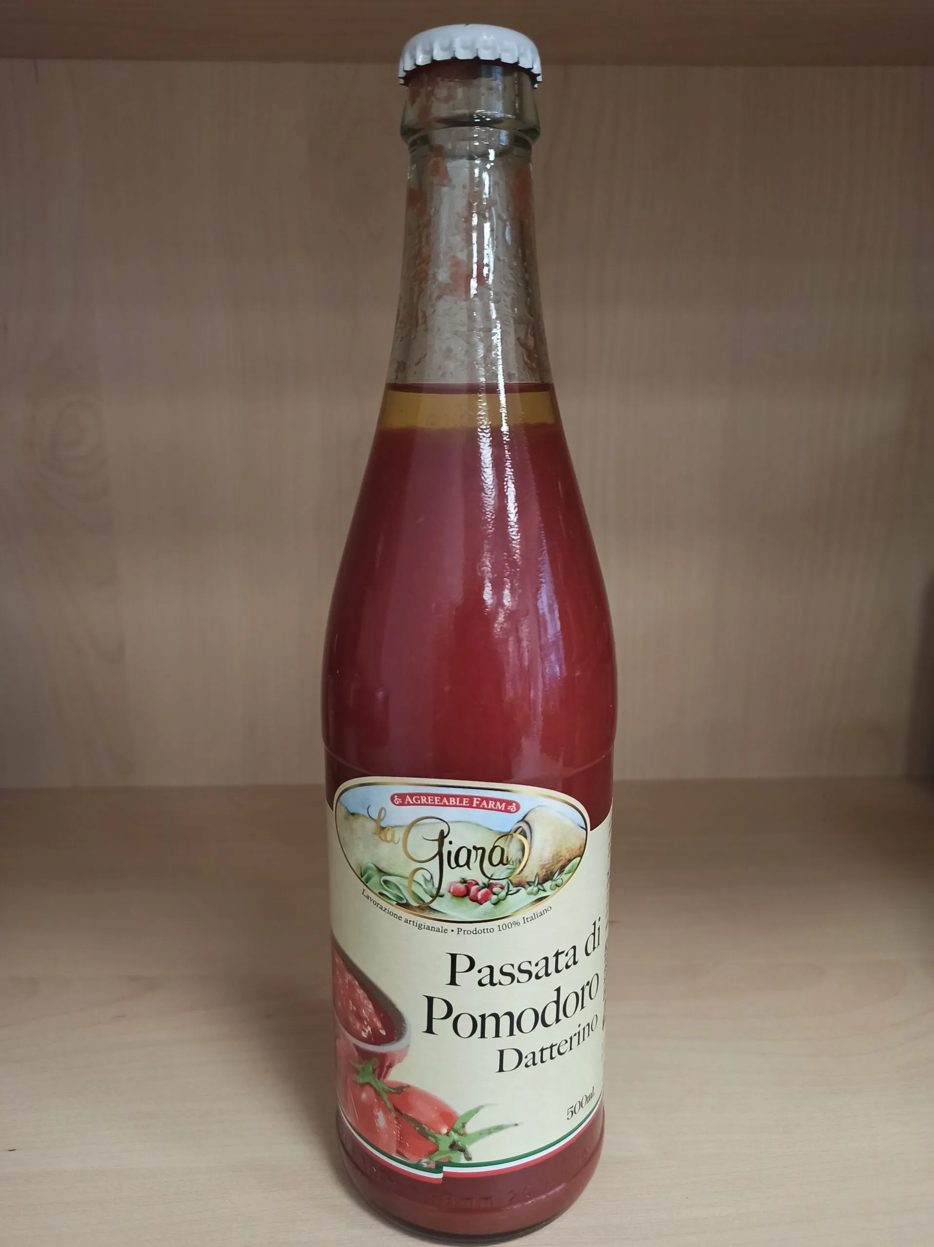 La passata di pomodori datterini è prodotta dall’azienda agricola abruzzese La Giara.