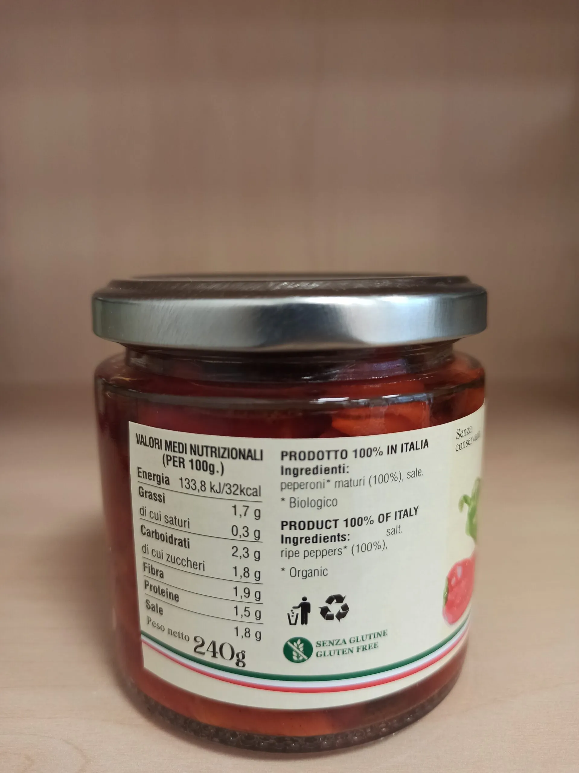 I peperoni arrostiti al naturale sono prodotti biologicamente.
