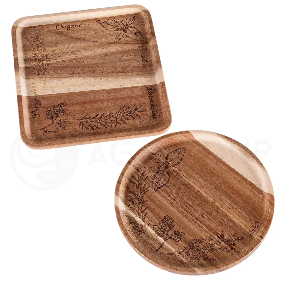Piattino e Vassoio alimentare in legno di acacia set 24 pezzi