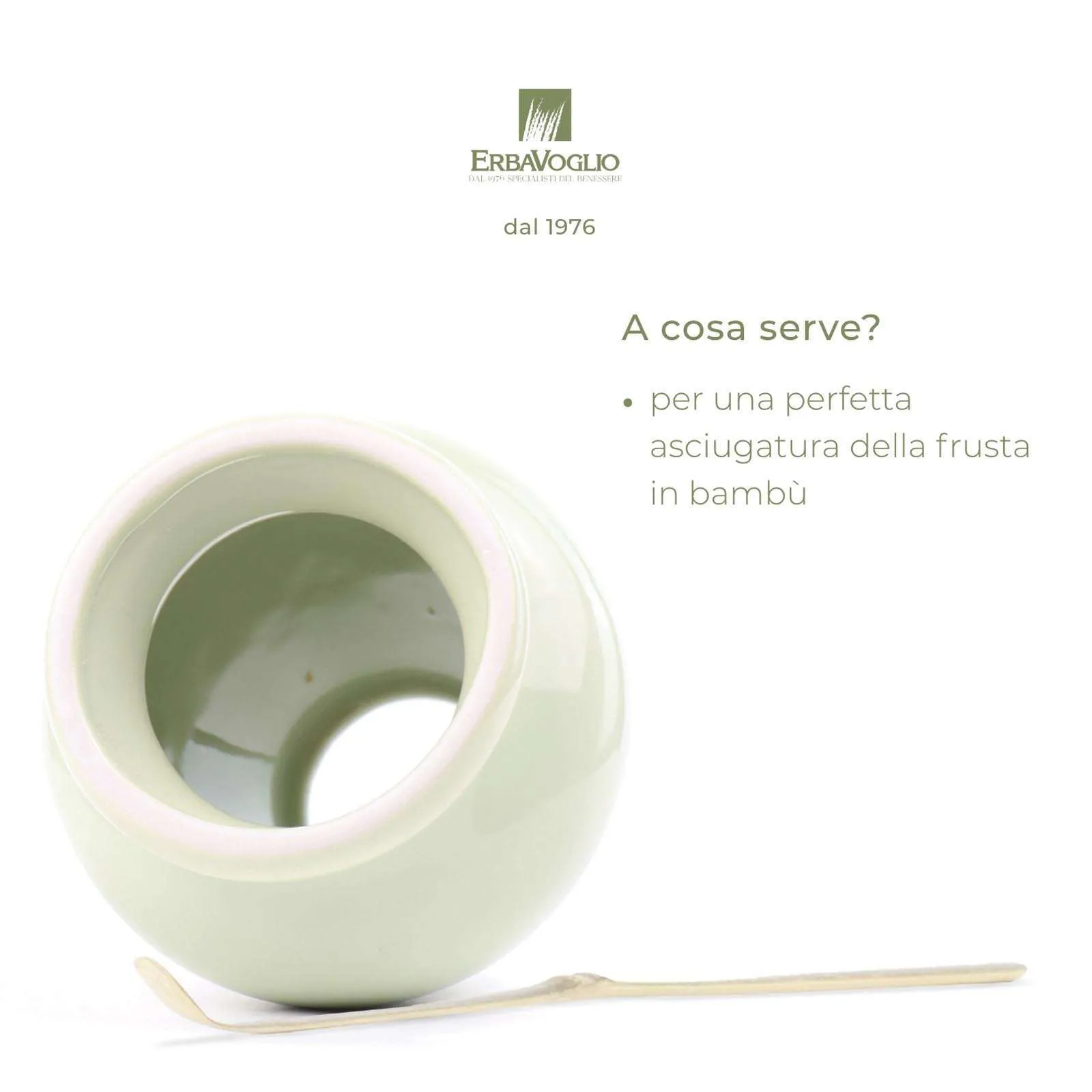 La sua specifica forma ad ombrello è necessaria e funzionale per una perfetta asciugatura della frusta in bambù.