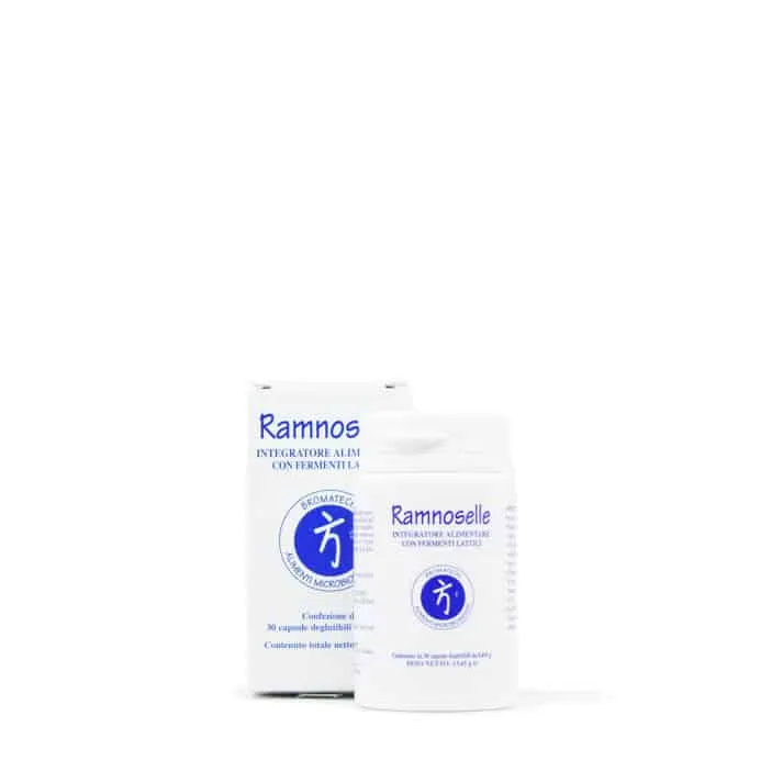 Ingredienti RAMNOSELLE – Bromatech: Maltodestrina da mais, gelatina (ingrediente capsula), antiagglomeranti: cellulosa microcristallina, magnesio stearato, biossido di silicio; miscela di fermenti lattici (lactobacillus rhamnosus LR 32 e lactobacillus acidophilus LA 14) inositolo.