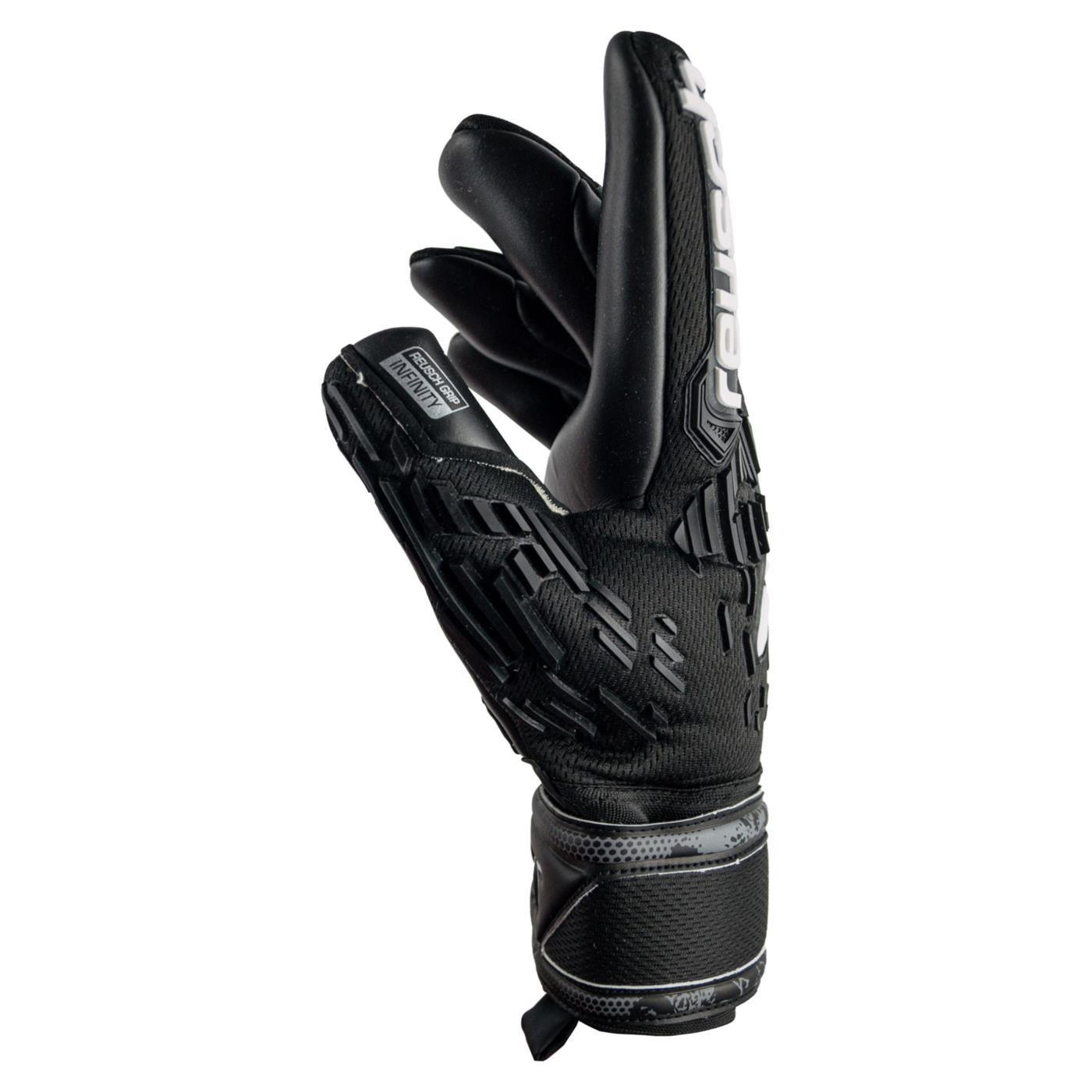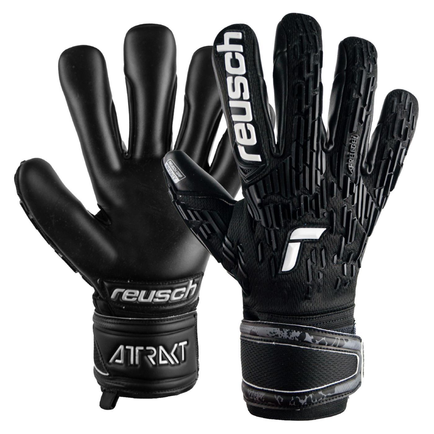 L’Attrakt Freegel Infinity in total black è un guanto protettivo da portiere realizzato per prestazioni professionali su erba artificiale. Il lattice Reusch Grip Infinity offre la massima durata e una buona presa, nonché un’elevata resistenza all’abrasione grazie ai rinforzi sul palmo inclusi. La nuova applicazione in silicone Freegel ridisegnata sul rovescio garantisce elevata flessibilità e leggerezza allo stesso tempo. L’Evolution Negative Cut con tasselli in lattice e rovescio in tessuto morbido offre una vestibilità molto precisa. Quest’anno con un look ancora più aggressivo.