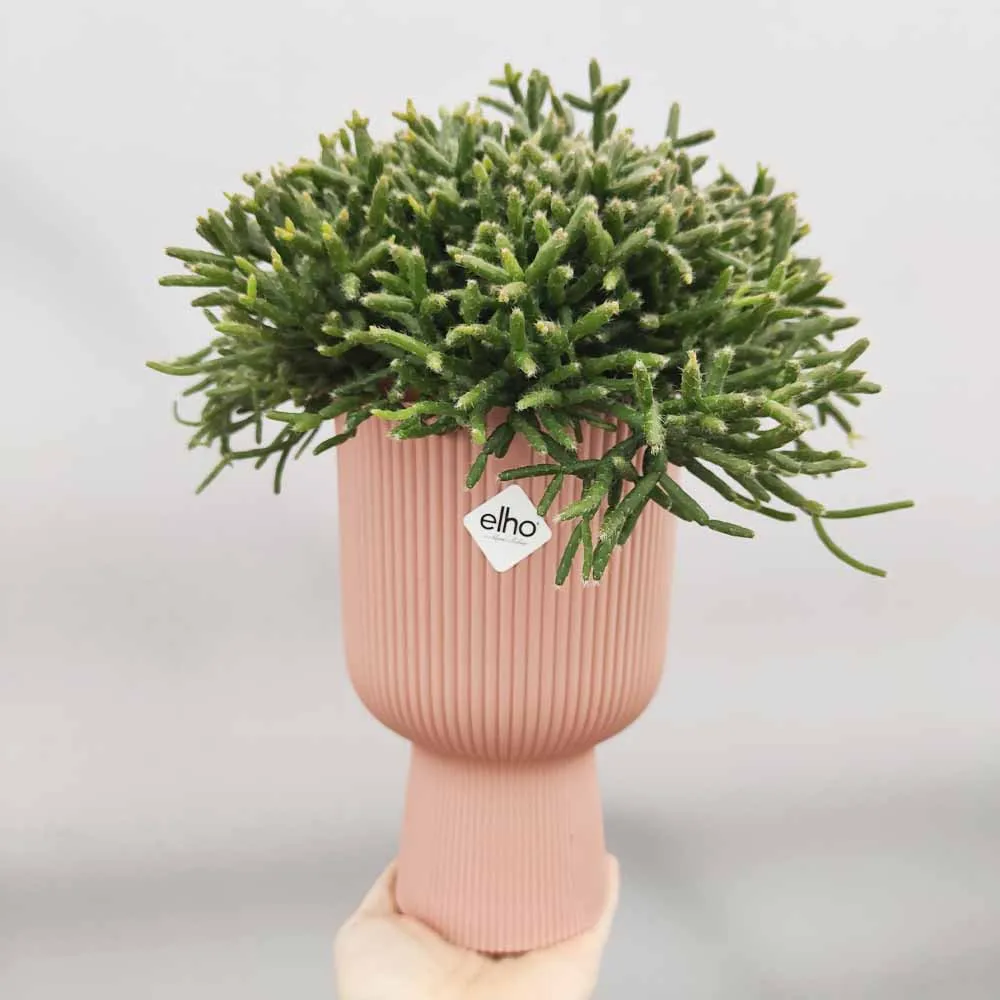 Rhipsalis burchellii è una pianta succulenta originaria del Brasile e cresce principalmente nelle foreste pluviali tropicali. Questa pianta ha un aspetto unico, con i suoi fusti sottili e pendenti che creano una cascata di foglie verdi lunghe e strette, con un leggero rigonfiamento alla base le cui sfumature e tonalità possono variare anche sul rossiccio a seconda dell’ esposizione e delle temperature. Questa succulente produce fiori bianchi o gialli che sbocciano in primavera o in estate. Rhipsalis burchellii è una pianta molto facile da coltivare e richiede poca manutenzione e cresce bene in condizioni di scarsa illuminazione. La pianta richiede un terreno ben drenato e una buona quantità di acqua durante la stagione di crescita con concimazione regolare per mantenere sana e vigorosa la sua chioma; in inverno, invece, necessita di meno acqua e può essere mantenuta leggermente più asciutta. Infine, Rhipsalis burchellii è una pianta grassa non tossica e sicura per gli animali domestici; la sua bellezza unica e la facilità di coltivazione la rendono una scelta eccellente per chiunque voglia aggiungere una pianta originale ed interessante alla propria collezione.