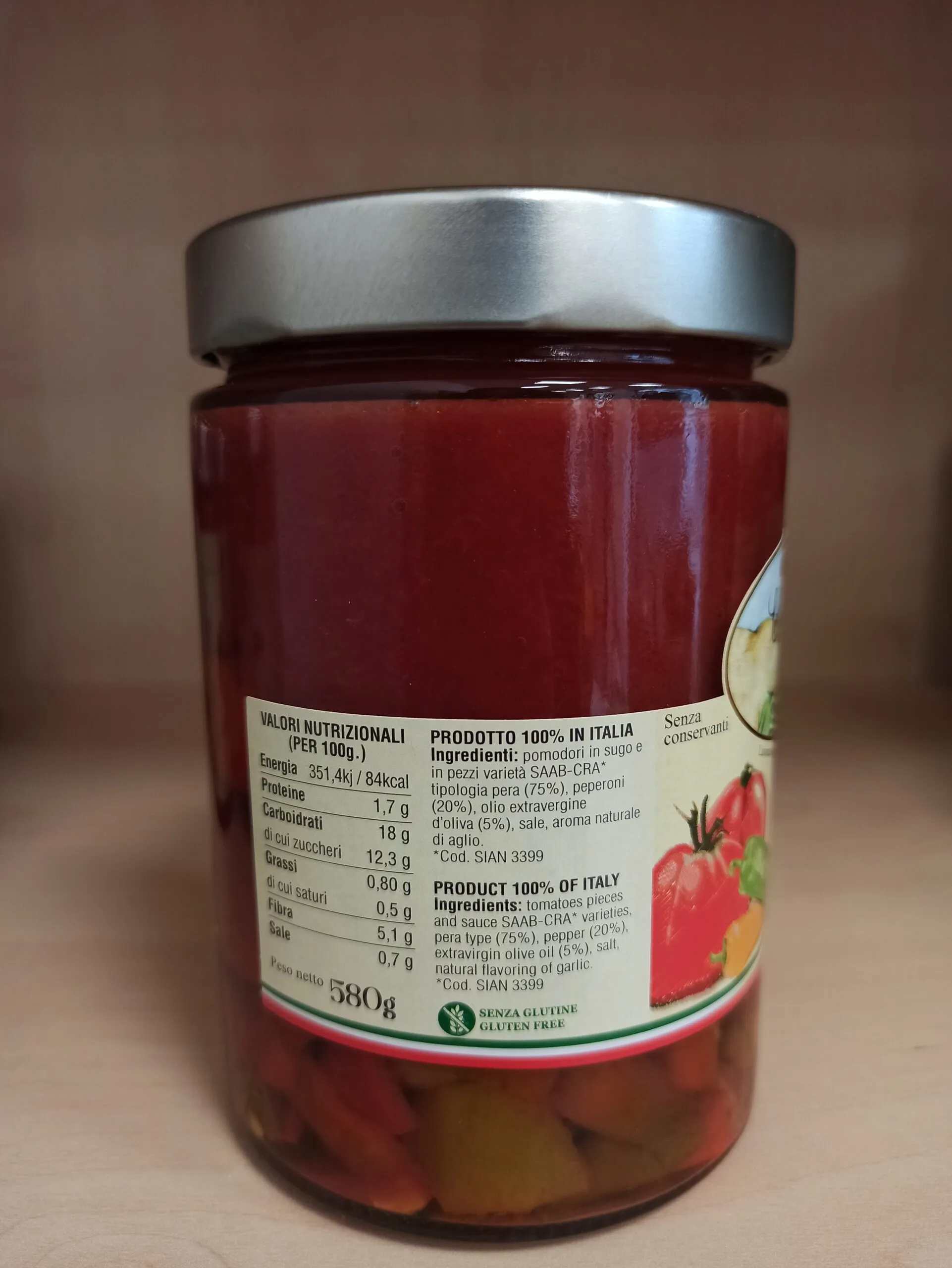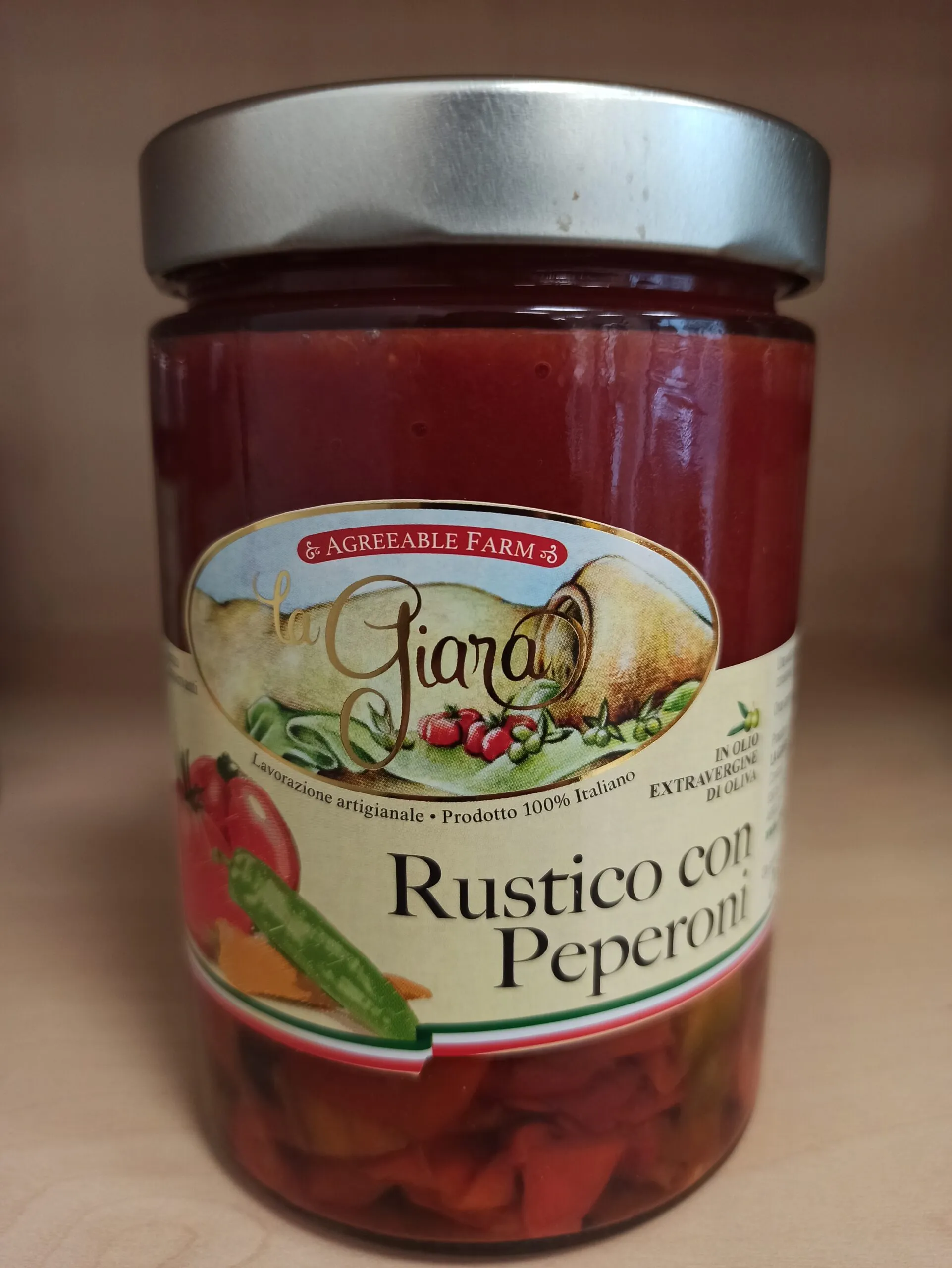Il rustico con peperoni è una salsa di pomodori pera a pezzettoni. I pomodori utilizzati sono di origine abruzzese.