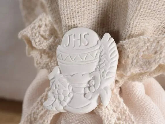 Sacchetto cotone con decoro Comunione in gesso (immagine calice) e tirante
