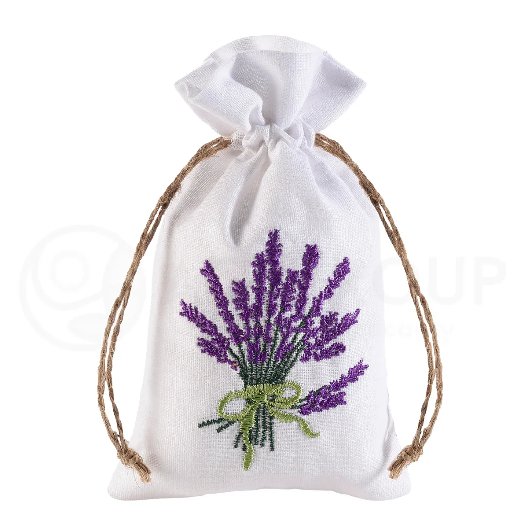 Sacchetto in cotone con ricamo lavanda e tirante 30 pezzi