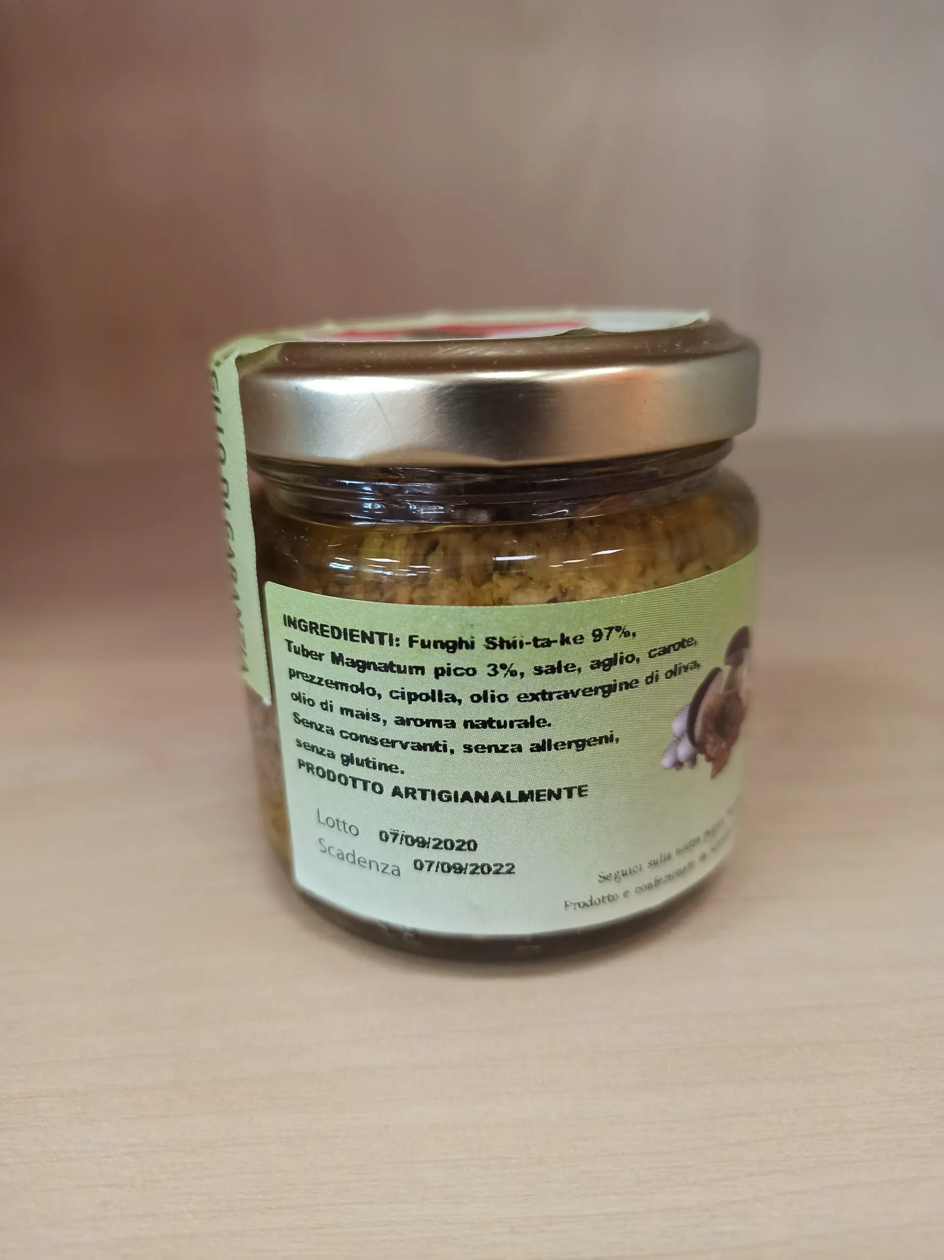 Ingredienti: funghi shiitake (Lentinula edodes) 70%, tartufo bianco