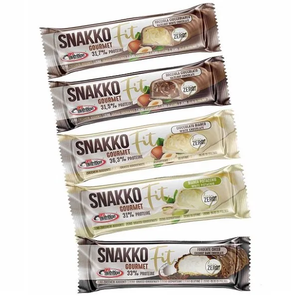 Cialda di wafer ricoperta di cioccolato ripiena di crema proteica. Ad elevato contenuto di proteine. Dolcificato con edulcoranti. Il prodotto è privo di glutine ed è realizzato all’interno di uno stabilimento autorizzato alla produzione di prodotti dietetici senza glutine.