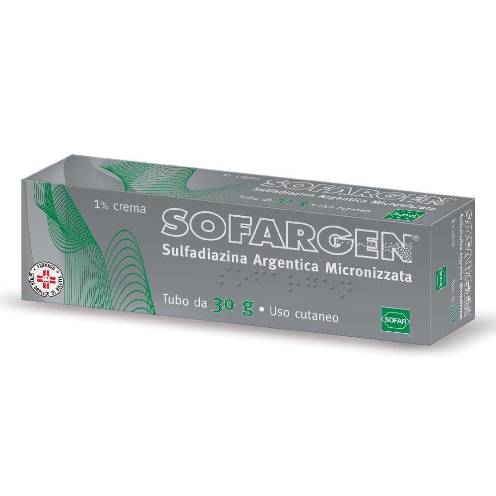 Sofargen contiene il principio attivo sulfadiazina argentica ed appartiene ad un gruppo di medicinali chiamati sulfonamidi. La sulfadiazina argentica è un antibiotico sulfamidico in grado di bloccare i meccanismi di replicazione batterica grazie all’azione del radicale sulfadiazinico ed espleta un’azione battericida ad ampio spettro d’azione, grazie alla presenza dello ione argento.