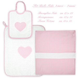 Fior di Coccole Set Asilo 3 pz Cuore Vichy Rosa