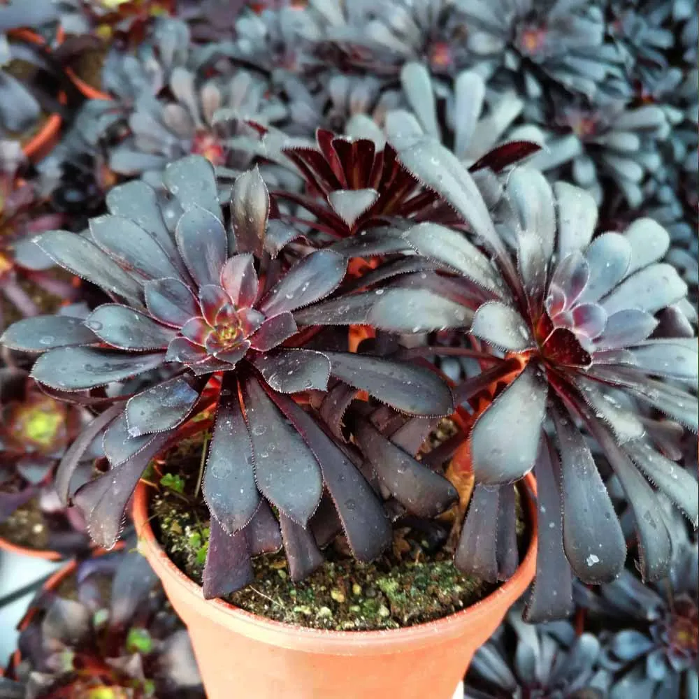 L’ Aeonium atropurpureum Schwarzkopf denominato anche “testa nera” è una succulenta davvero molto affascinante: caratterizzata da un color ebano nero che si accentua e perdura con la massima esposizione al sole. E’ una pianta a portamento arbustivo con lunghe ramificazioni legnose lisce e nude che terminano in ampie rosette dalle foglie lanceolate.