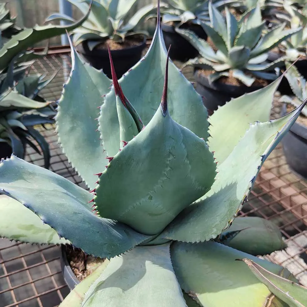 L’Agave applanata è una succulenta perenne originaria delle regioni aride del Messico. Questa specie di pianta grassa si distingue per le sue foglie spinose dai riflessi argentei e la sua resistenza a climi aridi e soleggiati. Le foglie, elemento distintivo di questa Agave, presentano una colorazione verde-grigiastra con riflessi argentei, una consistenza coriacea e una forma lanceolata. I margini sono caratterizzati da spine regolari e robuste, mentre l’apice termina con una spina acuminata. Questa morfologia conferisce alle foglie un aspetto spinosissimo e affascinante, con riflessi argentei che donano un tocco elegante alla pianta. Succulente facile, adattabile e rustica.
