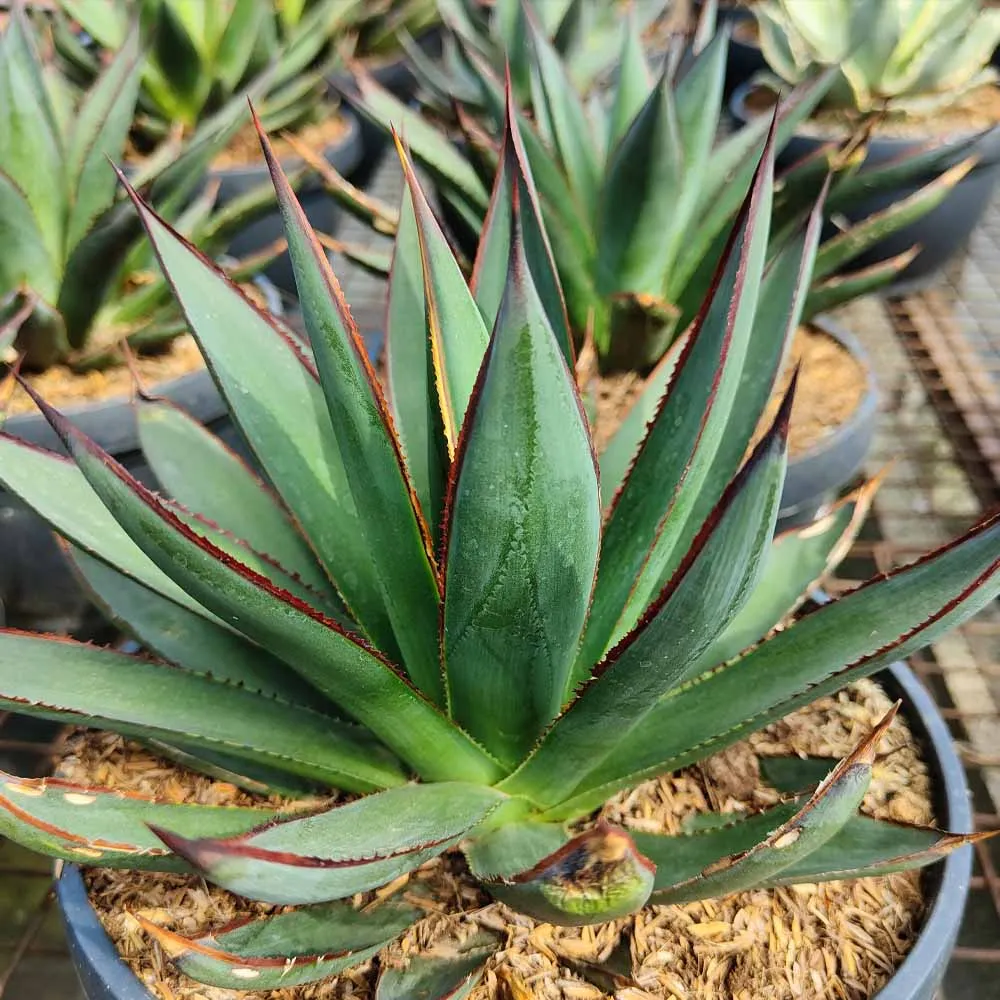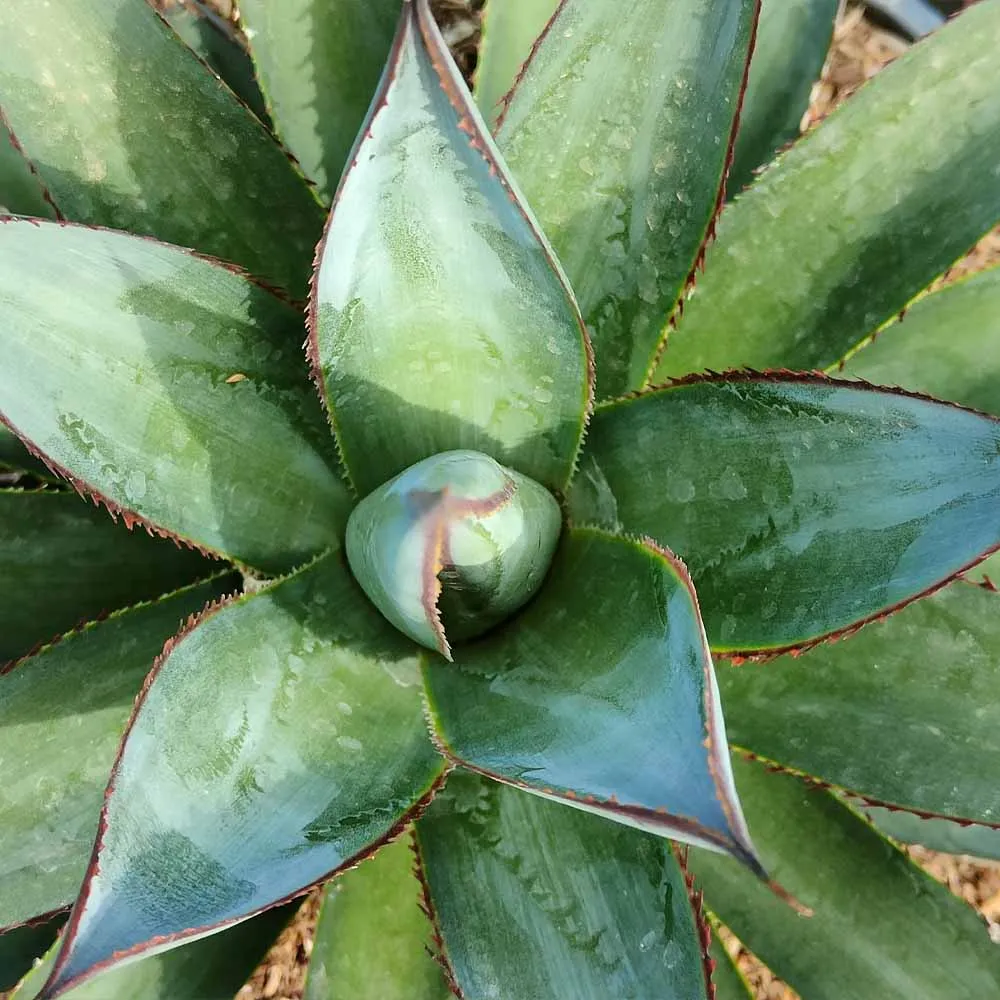 L’Agave ‘Blue Glow’ è una succulenta sempreverde a crescita lenta che produce eleganti rosette di foglie blu-verdi, con una superficie leggermente gessosa. I margini finemente dentati sono adornati da una tonalità dorato rossastra, con un sottile contorno rosso che li delinea ulteriormente. Questa bellezza sorprendente è particolarmente affascinante quando illuminata dal sole in controluce, che mette in risalto il margine rosso e dorato brillante. E’ una succulenta a manutenzione relativamente bassa che prospera in terreni ben drenanti e con annaffiature moderate.