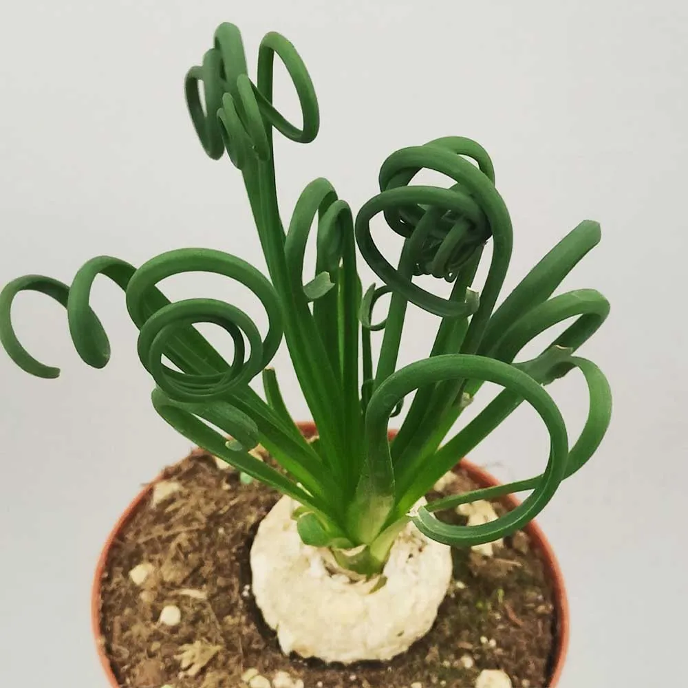 L’ Albuca spiralis è una pianta grassa bulbosa dalla particolarissima caratteristica: le sue foglie sono arricciate. Dal piccolo bulbo basale fuoriescono una serie di fitte e sottili foglie che terminano con ricci creando movimenti accattivanti e stravaganti. Oltre al suo portamento anche la fioritura è inconsueta, infatti l’ Albuca spiralis è una pianta di dormienza estiva che dona fiori nel periodo autunnale formando lunghi steli che terminano in grappoli bianchi dal gradevole profumo vanigliato. Una succulenta davvero molto curiosa da coltivare con passione.