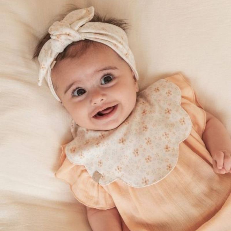 Bamboom Bavaglino Flower è realizzato in un morbido tessuto di origine naturale, è ultra-assorbente e delicato sulla pelle sensibile del bambino.