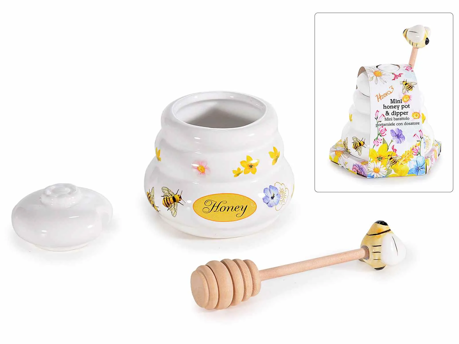 Barattolo porta miele alimentare ceramica con coglimiele legno