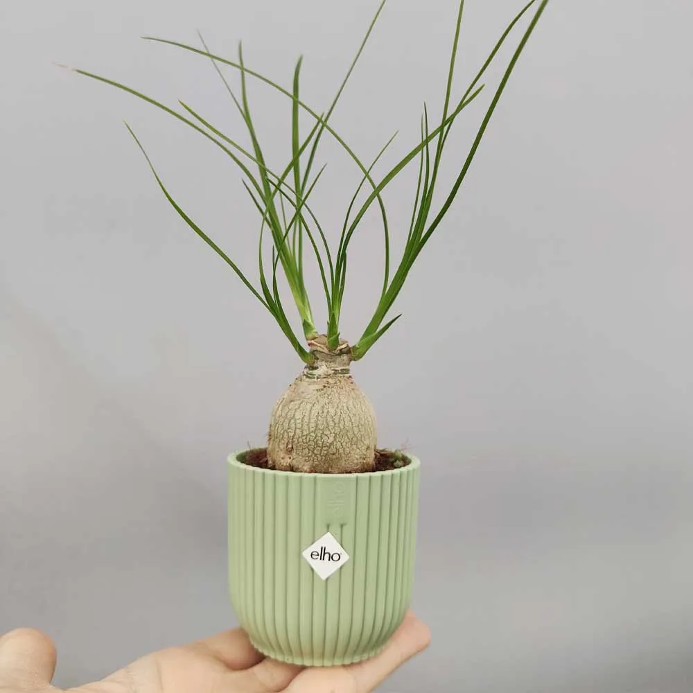 La Beaucarnea recurvata nella versione con vaso “Vibes” e vaso “Brussel” , la pianta non è direttamente piantata nel vaso, ma inserita con il proprio vaso da coltivazione in modo da rendere agevole tutte le irrigazioni e manutenzioni alla stessa evitando spiacevoli marcescenze.