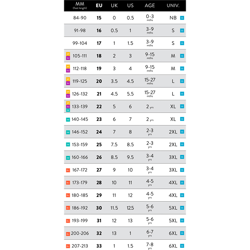Le scarpe Bobux sono progettate per includere un piccolo “spazio di crescita e movimento”, quindi le dimensioni potrebbero sembrare più grandi rispetto a quelle di altre marche.