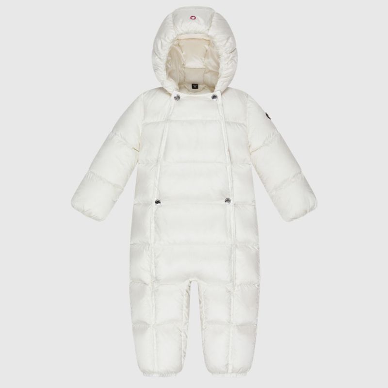 Il tessuto esterno della tutina è impermeabile, e l’imbottitura interna è realizzata in vera piuma pensata appositamente per garantire una protezione termica ottimale.