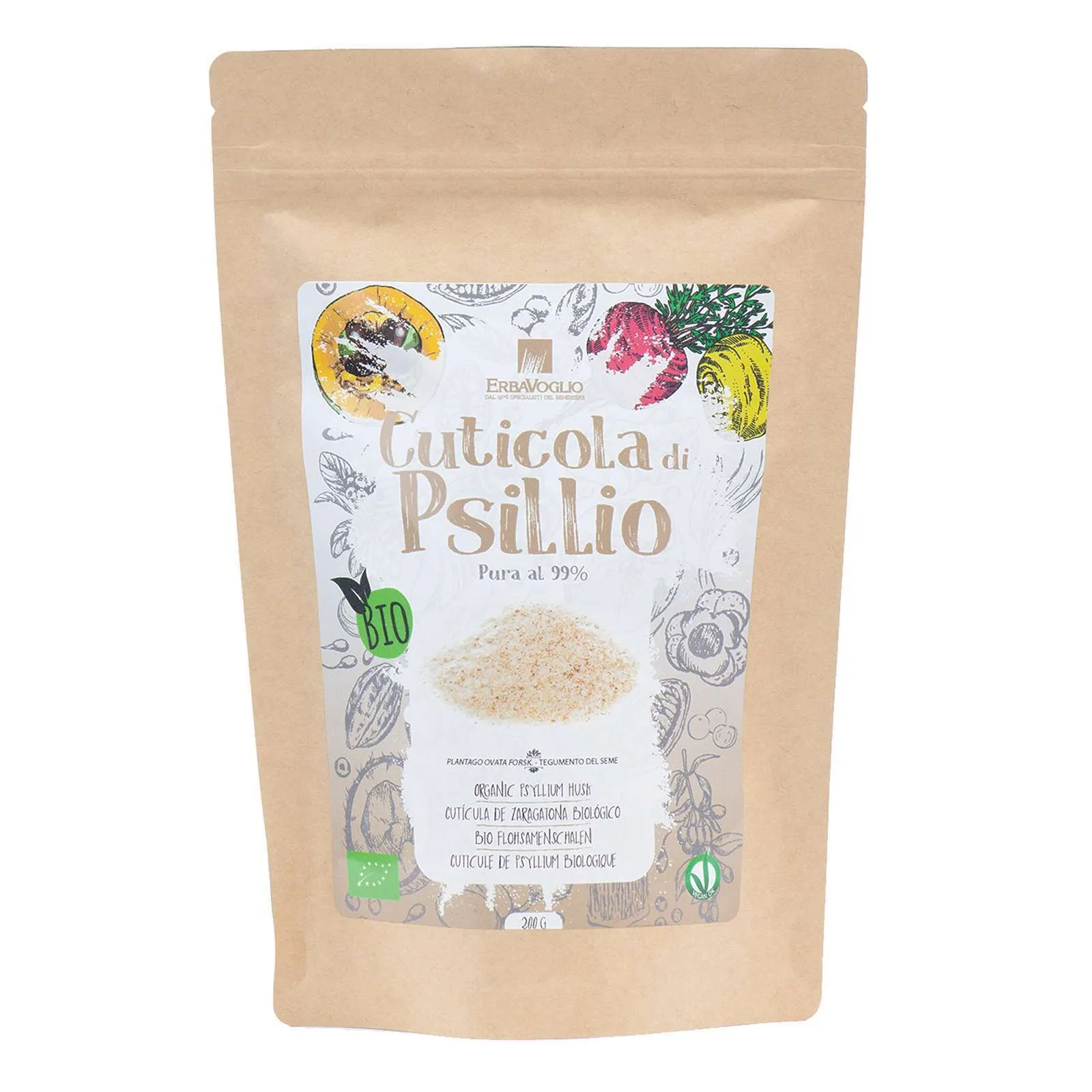 La cuticola di Plantago psyllium è la parte più ricca di fibra solubile del seme di psillio. Quando entra in contatto con i liquidi, si gonfia formando una mucillagine naturale che si integra perfettamente in diversi tipi di preparazioni alimentari. Proveniente da agricoltura biologica, è priva di additivi e coloranti. La sua consistenza fine e la sua neutralità di sapore la rendono facile da aggiungere a frullati, yogurt e bevande.