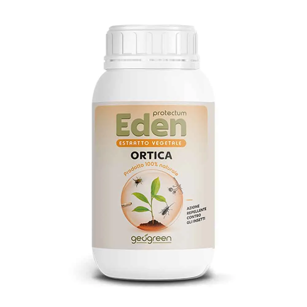 Eden Protectum Ortica è un prodotto liquido acquoso derivante da Urtica urens e Urtica dioica con un gran numero di nutrienti quali azoto, fosforo, potassio, magnesio, calcio, acido salicilico e acido formico; sostanze minerali come ferro, silicio e manganese e promotori della crescita. Ha un’ azione repellente nei confronti dei parassiti come acari e afidi che possono attaccare foglie, frutti e radici. Grazie alla presenza di sostanze minerali, inoltre, contrasta problemi di clorosi ferrica e ingiallimenti fogliari. Consigliamo l’ uso insieme a Eden Sapone molle per una maggiore efficacia ed Eden Protectum Aglio per creare ambiente inadatto alla proliferazione.