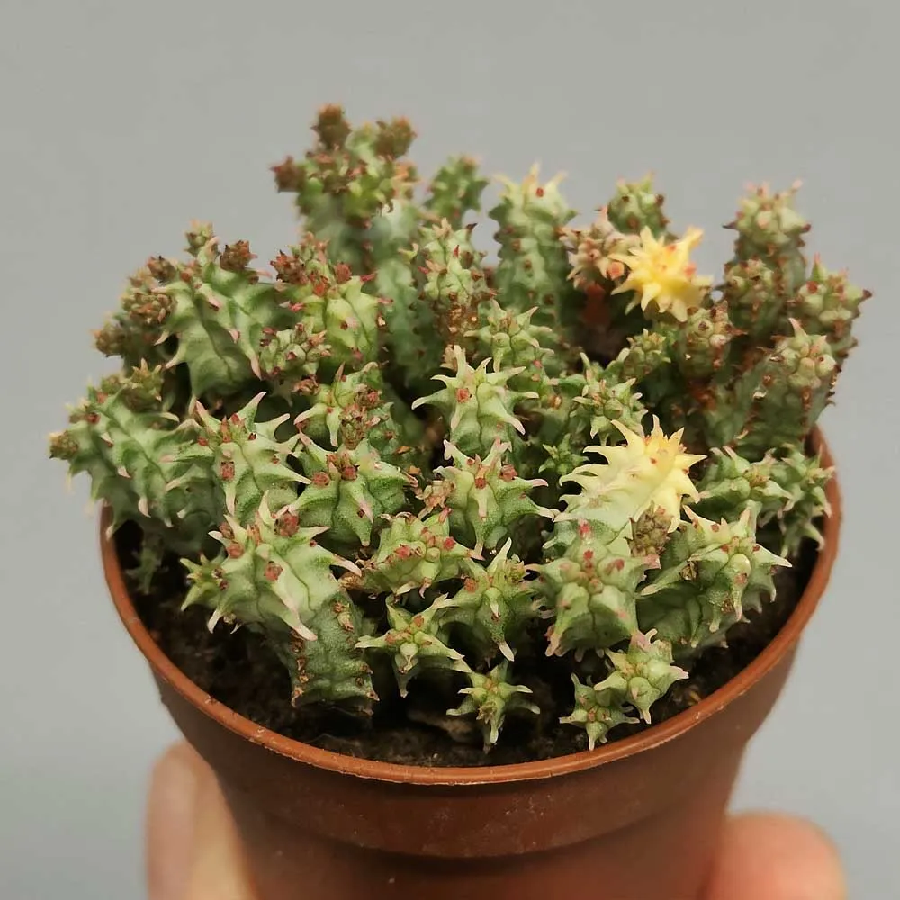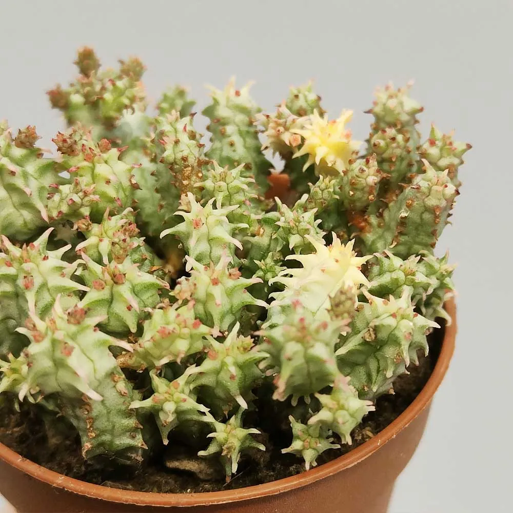 Lo sviluppo dell’Euphorbia submammillaris variegata è relativamente lento ed è una pianta grassa perfetta per la coltivazione in vaso data la sua forma compatta e grande versatilità ornamentale.