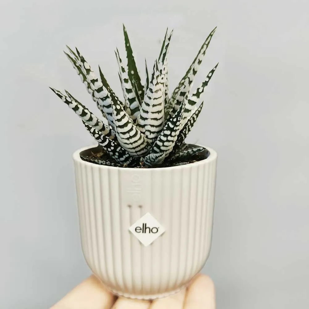 L’ Haworthia attenuata cv Wide Zebra “vaso design” è corredata da vaso . La pianta non è direttamente piantata nel vaso, ma inserita con il proprio vaso da coltivazione in modo da rendere agevole tutte le irrigazioni e manutenzioni alla stessa evitando spiacevoli marcescenze.