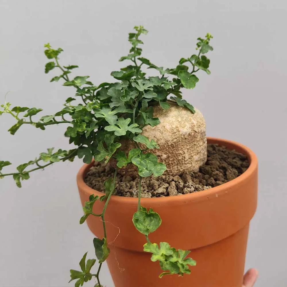 La Kedrostis africana, comunemente nota come “cetriolo del babbuino”, è una succulenta caudiciforme dal fascino unico. Originaria delle regioni aride dell’Africa meridionale, questa pianta è apprezzata per il suo caudex carnoso e le sue lunghe liane.